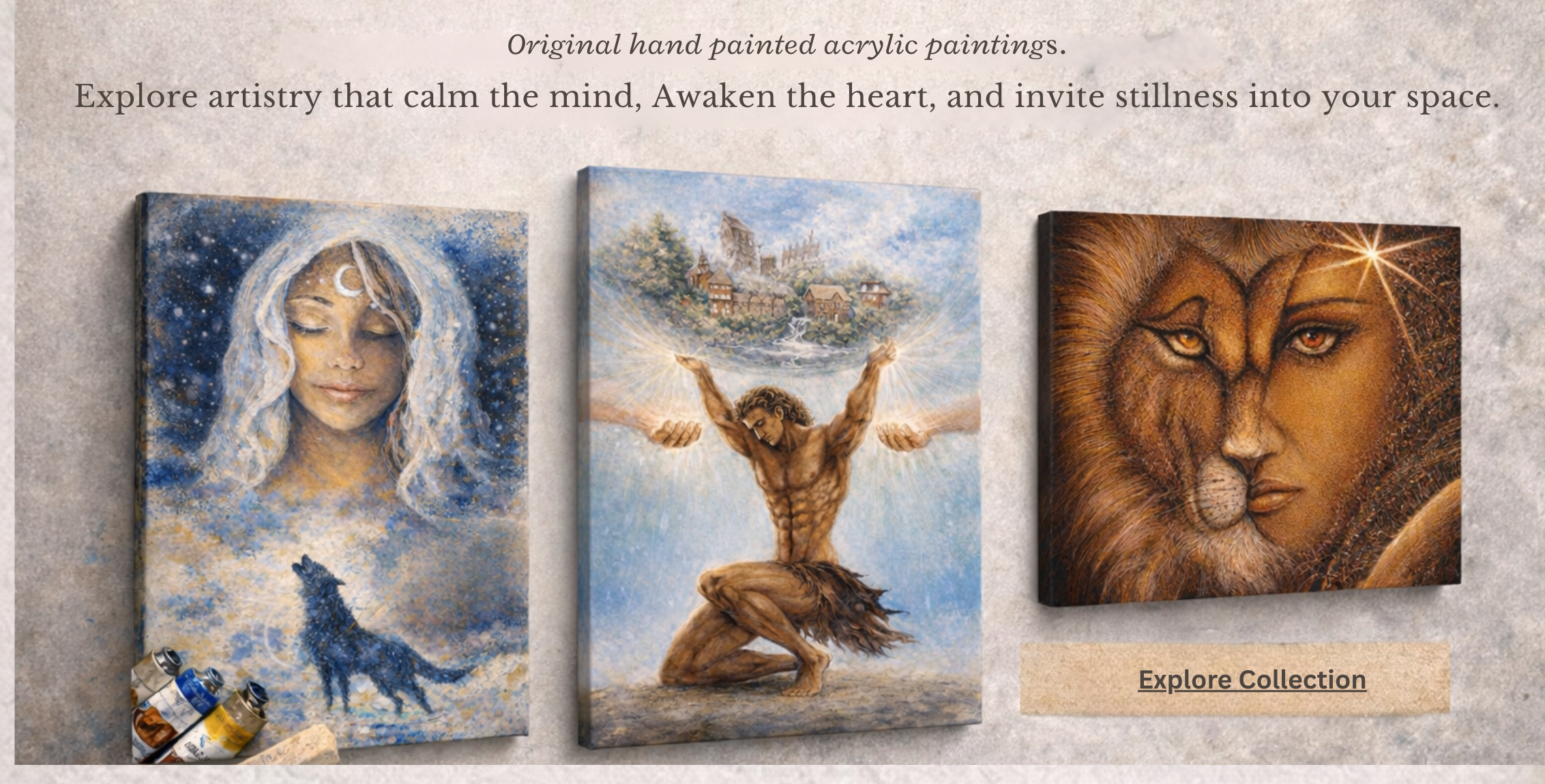 Original hand-painted canvases and selected works available as fine art prints.These pieces...