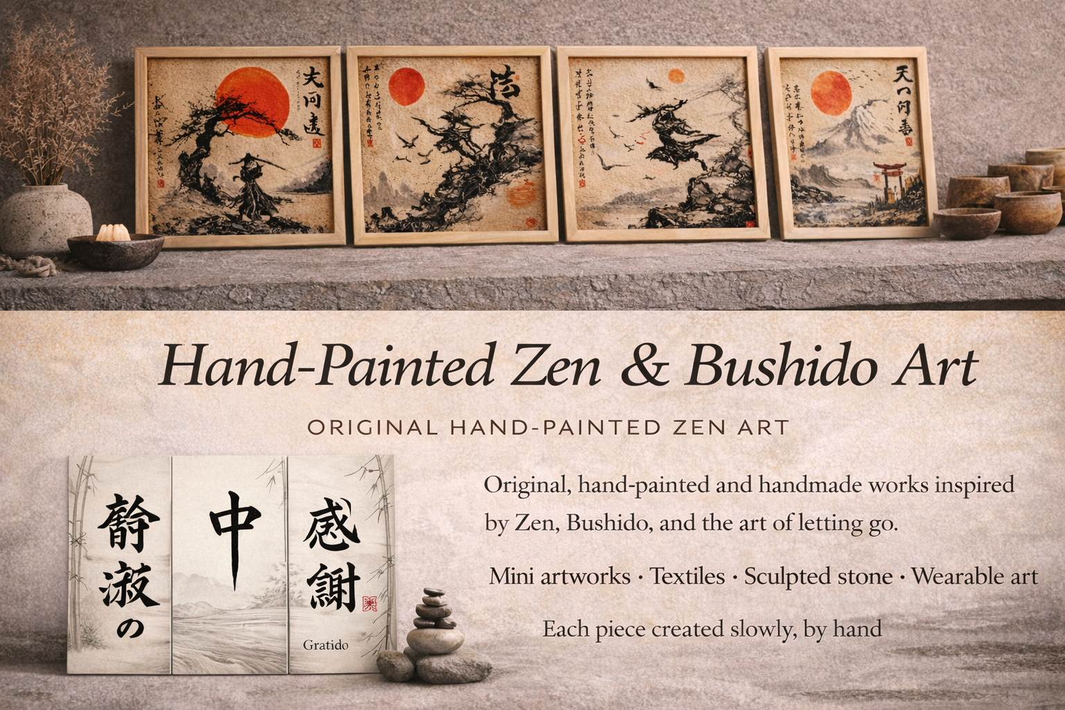 Handcrafted Zen + Bushido art, ritual pieces, and sacred tools for letting go, healing, and reclaiming your true identity.