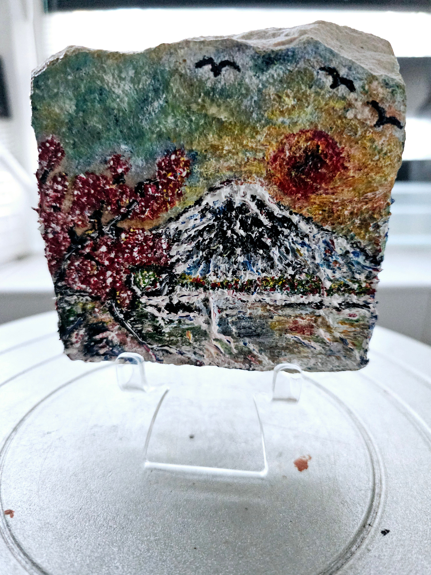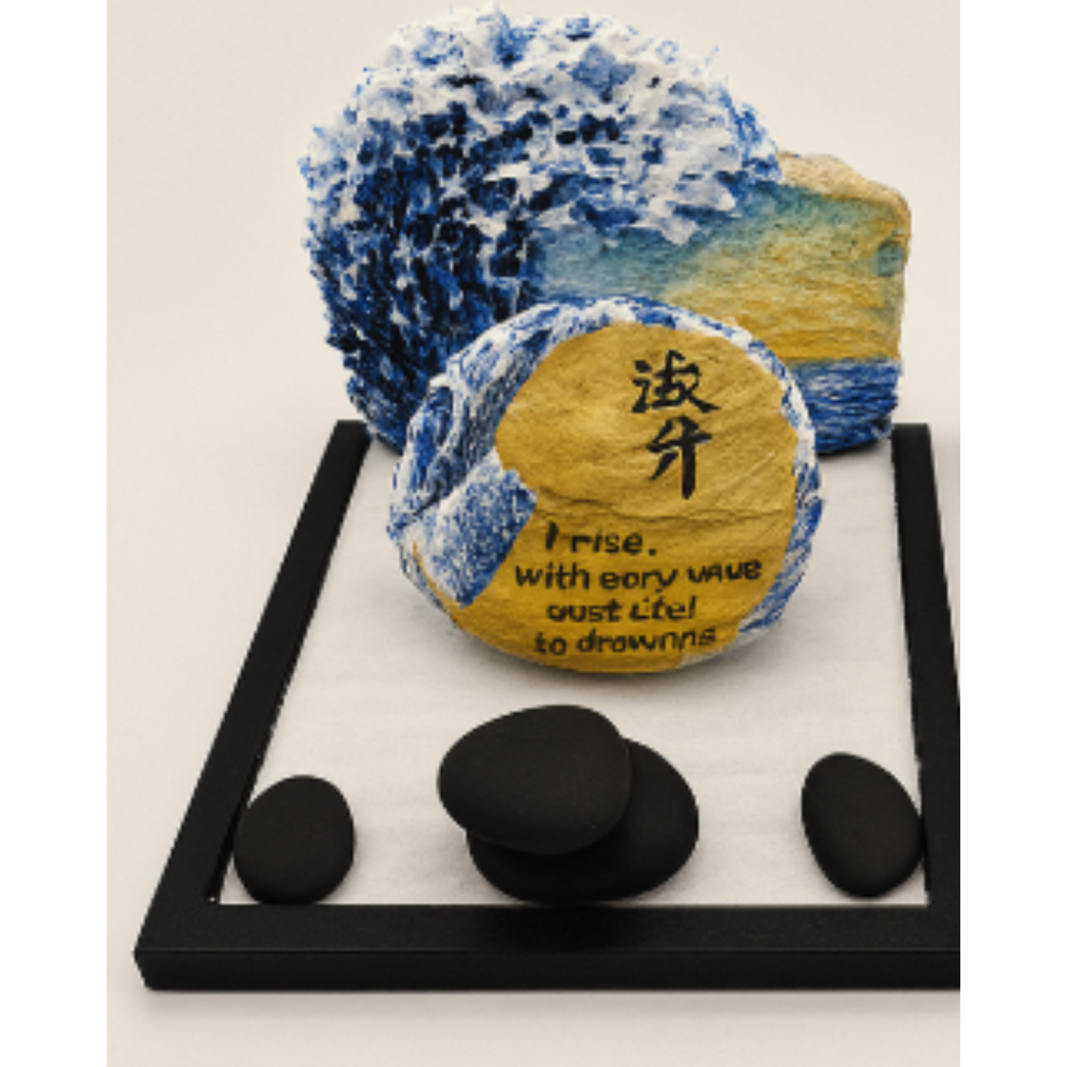 Painted with intention, these 3D textured rocks feature Japanese landscapes—Mountains, pagodas, cherry...